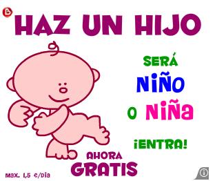 No me lo puedo creer ¡pero qué fácil!, siempre pensé que esto era más complicado y, sobre todo, que hacía falta la intervención de, al menos, dos personas. Pero ¡que va! con un solo click puedes hacerlo. Así, a pelo. Lo raro es que, pese al virtualismo de la acción, no podrás elegir el sexo, eso, como en la vida, viene dado por la suerte. Aunque algo se puede sacar en claro: será niño o niña, nada de cosas intermedias. Seguridad 100% de que nada saldrá del armario dentro de unos años.