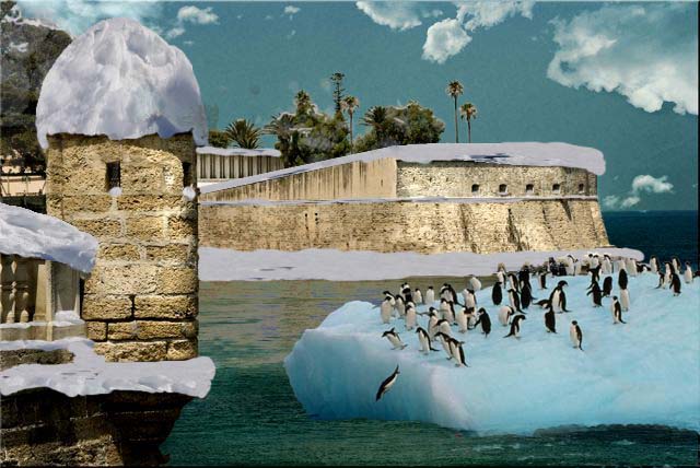 Hay que ver lo exagerada que es la gente en Cádiz. Un poquito de viento siberiano, dos pingüinos en la Bahía y todo el mundo muerto de frío. Pues que quieren que les diga, pese a la instantánea que acabo de tomar con el móvil, me parece exagerado cargarse de abrigos, bufandas, guantes, gorros como si estuviéramos en el Polo Norte…