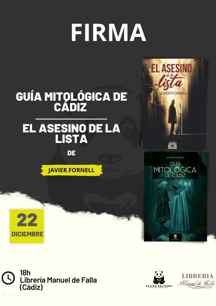 El próximo día 22 de diciembre, día de la Lotería de Navidad, estaré firmando por la tarde en la Librería Manuel de Falla (Plaza Mina, Cádiz) desde las 18h hasta cierre. Os espero para firmaros ejemplares de cualquiera de mis obras y charlar un rato sobre libros e historia.