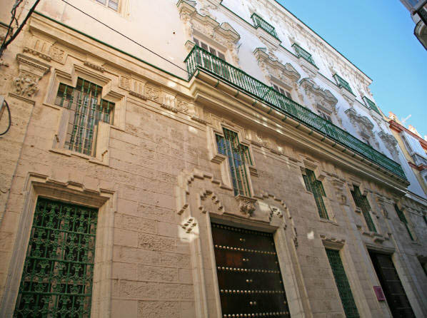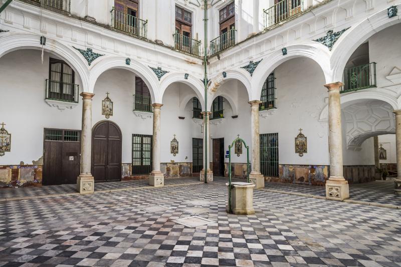 El patio principal, de planta rectangular, es el órgano regulador del espacio, en una combinación entre lo genovés, lo holandés y lo andaluz y se divide en dos cuerpos: el primero de ellos, de orden dórico, está compuesto por tres arcos de medio punto a cada lado apoyados sobre columnas de mármol blanco; mientras que el cuerpo superior está articulado por pilastras que enmarcan vanos rectangulares que terminan en frontones partidos con óculo circular en el centro. El conjunto está decorado con elementos como cabezas femeninas tocadas de laurel, mascarones barbudos, o la representación de Hércules luchando con el león de Nemea y la columna del Non Plus Ultra, estos últimos como reconocimiento a la ayuda prestada en la construcción del edificio por la ciudad de Cádiz.