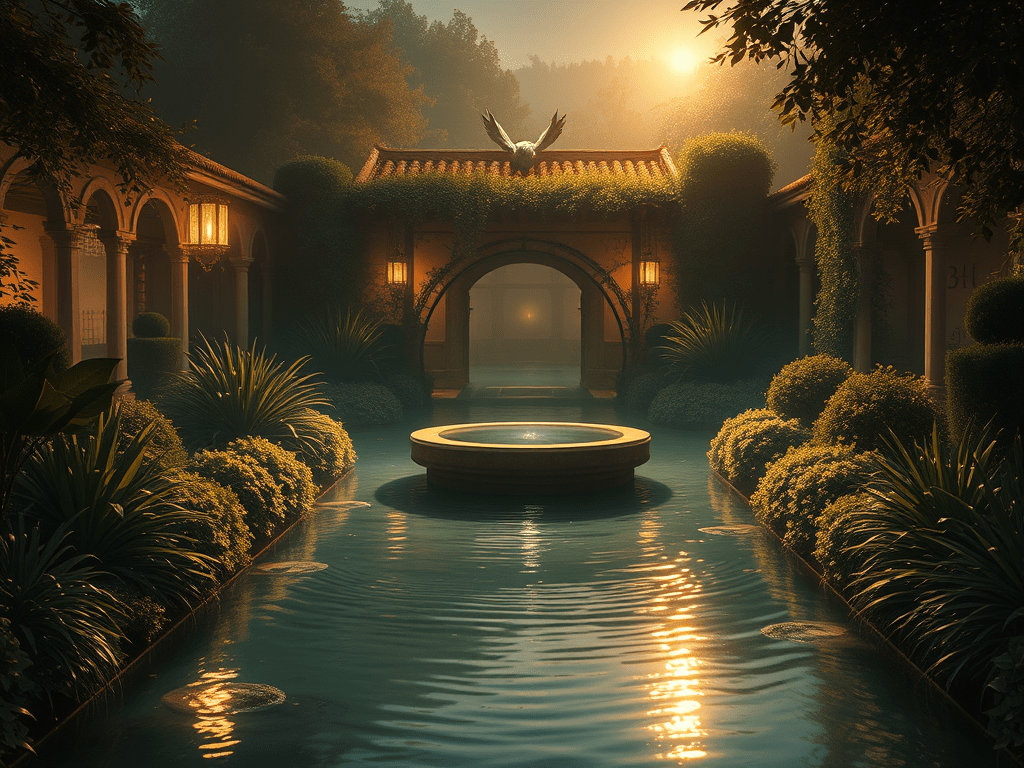 Traté de gritar, sin conseguirlo pues la manaza del moro tapaba mi boca. En la penumbra, logré vislumbrar el jardín en el que me encontraba. El agua corría por un canal, hasta un gran estanque central y los faroles estaban encendidos iluminando el porche que daba acceso a la casa, de una sola planta y adobe, como muchas de la medina nueva. De pie, frente a la puerta, estaba Joao. Vestía una túnica de seda, que brillaba dorada por la luz de las velas; en su cintura, la vaina de una espada era la única decoración que destacaba, pero se encontraba vacía.
