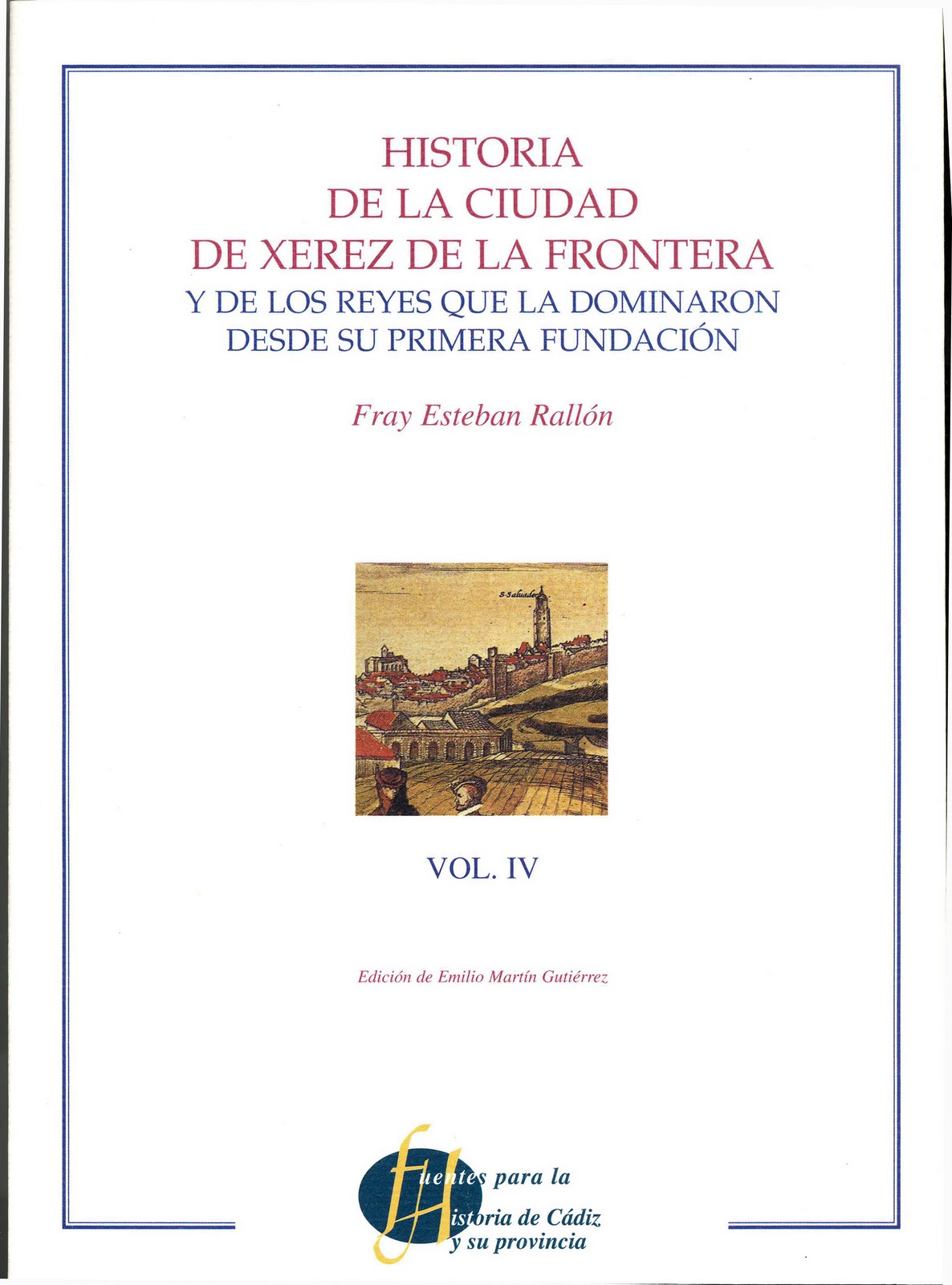 Historia de la ciudad de Xerez de la Frontera y de los reyes que la dominaron desde su primera fundación. Vol. IV Fray Esteban Rallón, Servicio de Publicaciones de la Universidad de Cádiz. Cádiz. 2003.